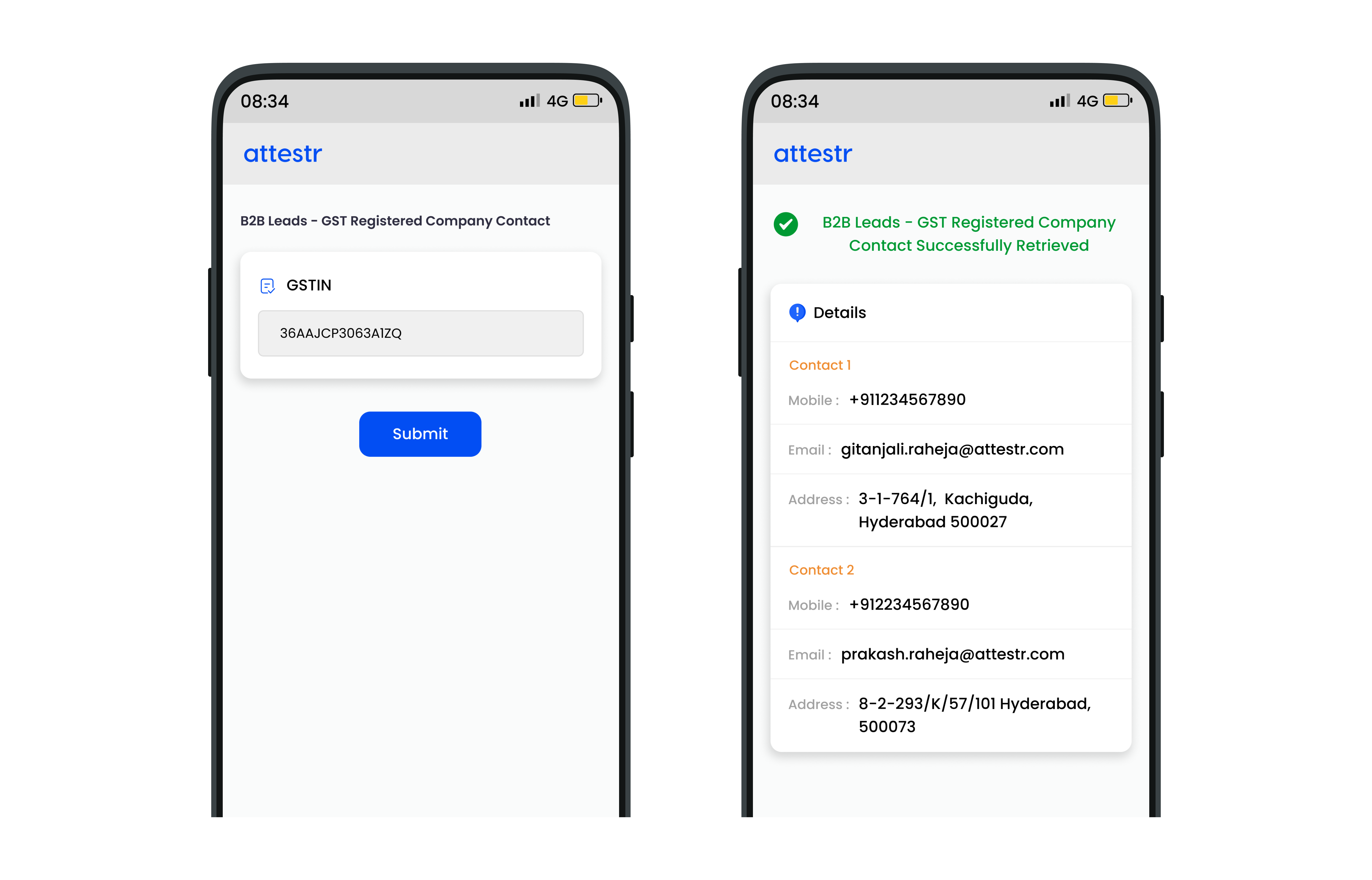 API TO FETCH CONTACT INFORMATION INCLUDING EMAIL AND MOBILE NUMBER OF COMPANIES REGISTERED ON GSTIN NETWORK