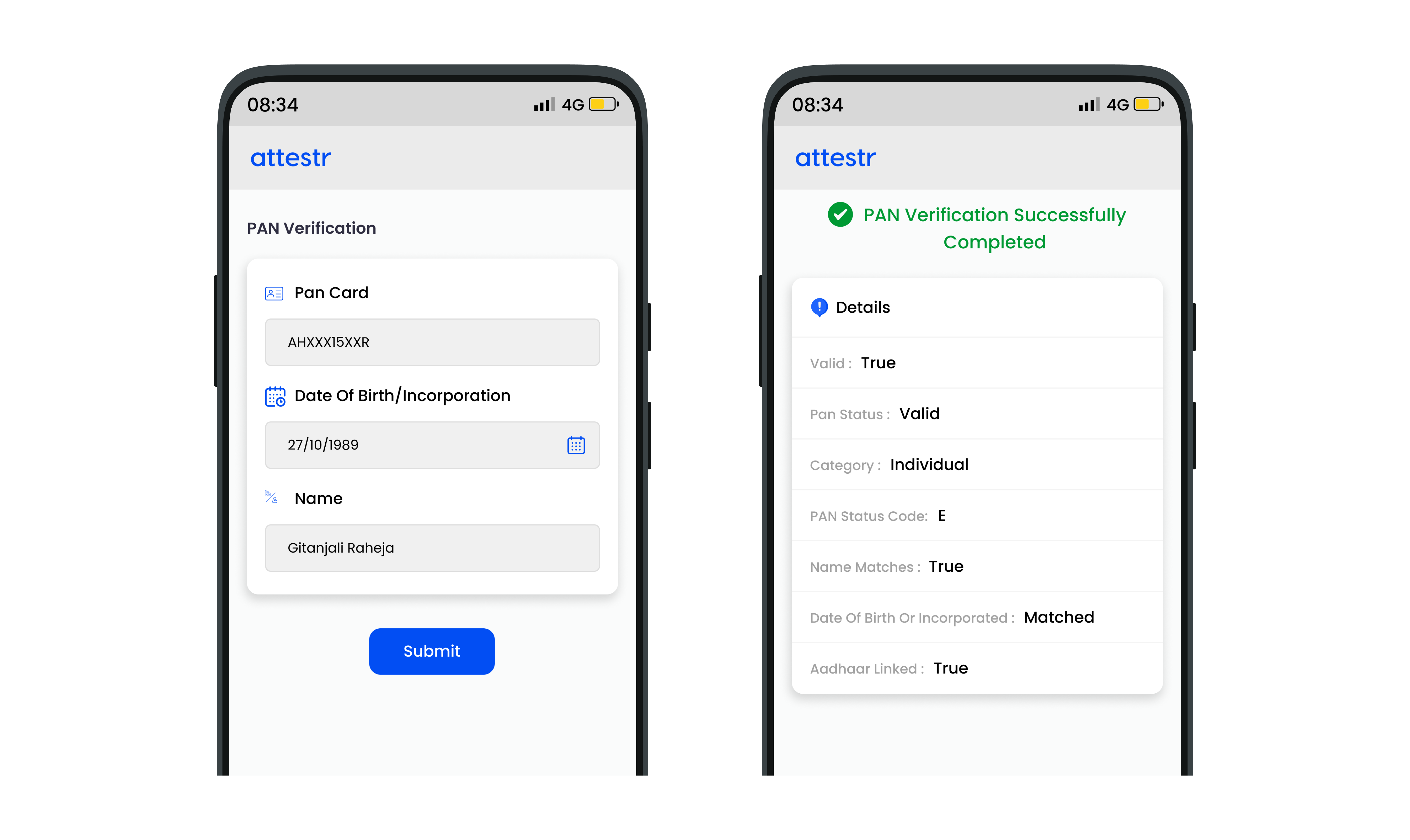 The PAN Verification API enables businesses to instantly validate and verify Permanent Account Number (PAN) details using PAN, Name, and Date of Birth (DOB) as inputs. Designed for fintech platforms, KYC workflows, compliance systems, lending platforms, onboarding solutions, and enterprise verification pipelines, this API helps organizations determine the authenticity and operational status of a PAN in real time while reducing fraud risks and manual verification effort.